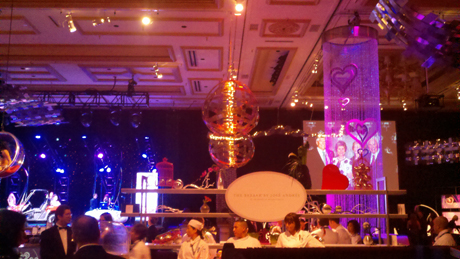 Rigging Technologies Inc. installed decorations and entertainment paraphernalia for the annual Employee Appreciation Event at the Bellagio Hotel and Casino. We hung Plexiglas bubble chairs from the ceiling which entertainment models occupied during the event. These chairs were tiered at different heights and were carefully monitored during the event to ensure that the entertainers were safe and secure at all times. We also provided and installed the truss for the lighting equipment and hung decorations from the ceiling throughout the ballroom area. In addition, we installed a decorative chandelier that converted into a dessert bar during the main event.