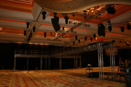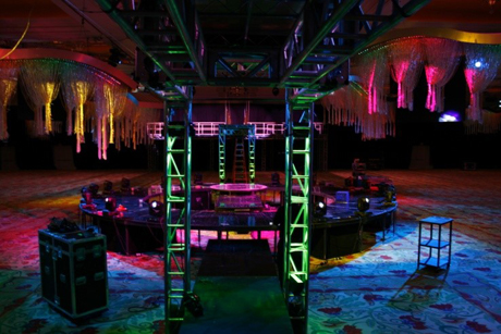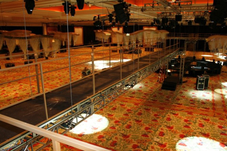 Rigging Technologies provided the equipment and rigging labor for the New Year’s Eve celebration at the Wynn Las Vegas. Our riggers set up the ground support for a catwalk, the structure for a silk act, and the circle truss for lighting.